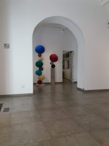 I visited the Monitor Gallery because I had discovered a young artist, Lucia Cantò, whom I wanted absolutely to see her work as it was giving me vibes of something strong and out of the norm. When I managed to reach there my feeling came true and I entered a place where something original happened there. Reaching this gallery though was an adventure!! I used google maps but I got lost, for sure you need a bottle of water with you if it is summer, or use a taxi or public transport, I try to avoid them but sometimes as I have bad orientation it’s the best option. I was there after almost an hour of walking from Castello degli Angeli. I was there, but where? The vitro outside of the space did not allow me to see inside so I could directly understand “Oh that’s the gallery”, so I just said enter the door that is in front of you… So I entered the gallery and before managing to say “Ηi” in the reception I threw my cell phone down, almost destroying an artwork, a small installation of butterflies staged on the floor… Thank God they were metallic and nothing happened… I still want to buy that small installation. The intern who was working there at the moment was extremely polite and helped me to collect my broken cell phone, so I could at least take two photos… and explained to me the exhibition and the process of the artist, as she gave me directions to explore more of the galleries projects.